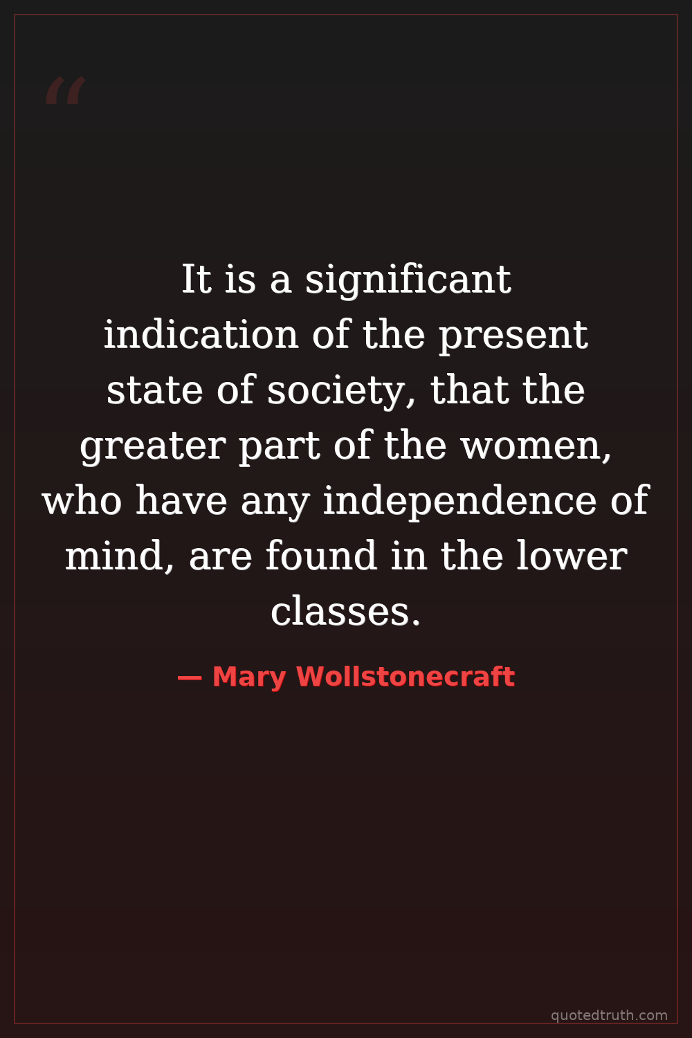 It is a significant indication of the present state of society, that the greater part of the women, who have any independence of mind, are found in the lower classes.