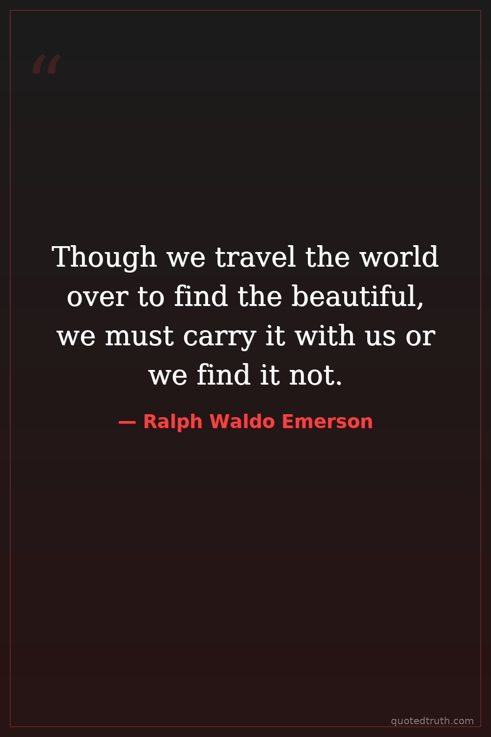 Though we travel the world over to find the beautiful, we must carry it with us or we find it not.