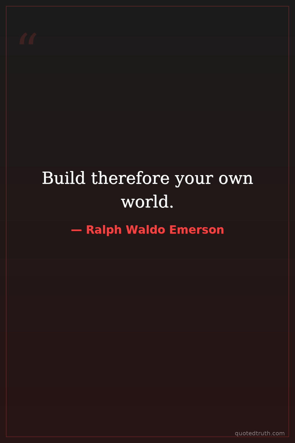 Build therefore your own world.