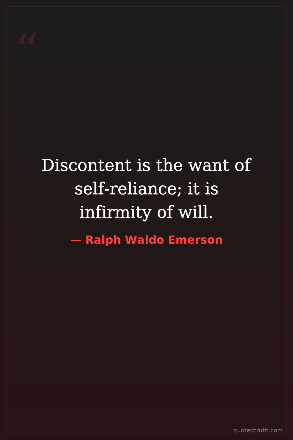 Discontent is the want of self-reliance; it is infirmity of will.