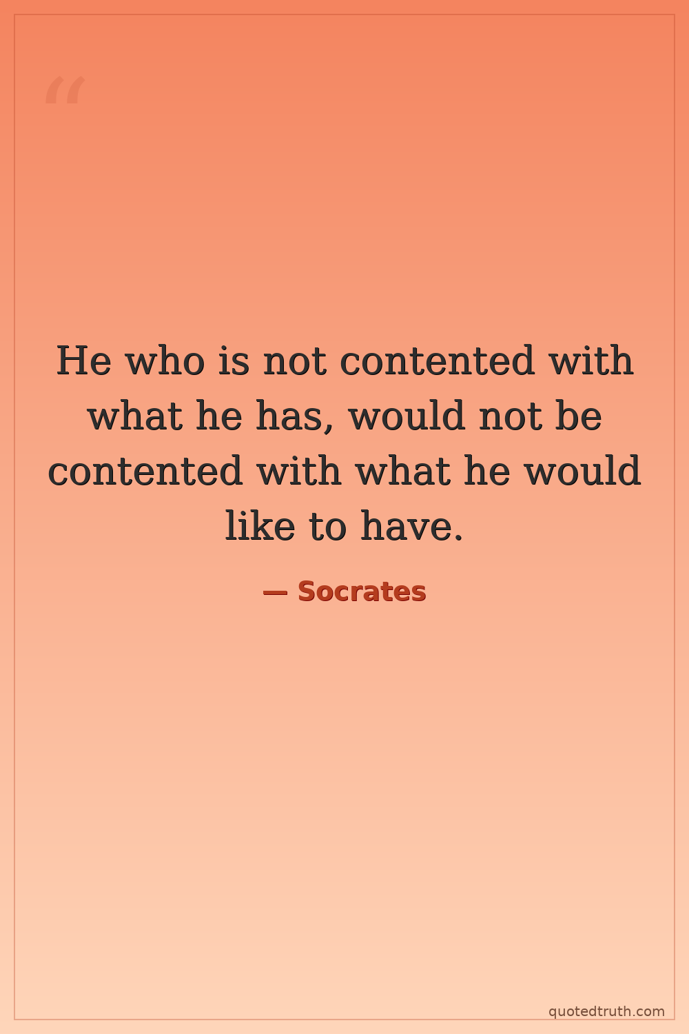 He who is not contented with what he has, would not be contented with what he would like to have.