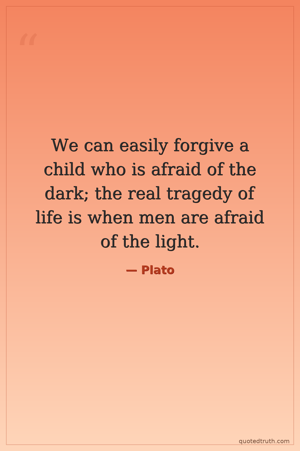 We can easily forgive a child who is afraid of the dark; the real tragedy of life is when men are afraid of the light.