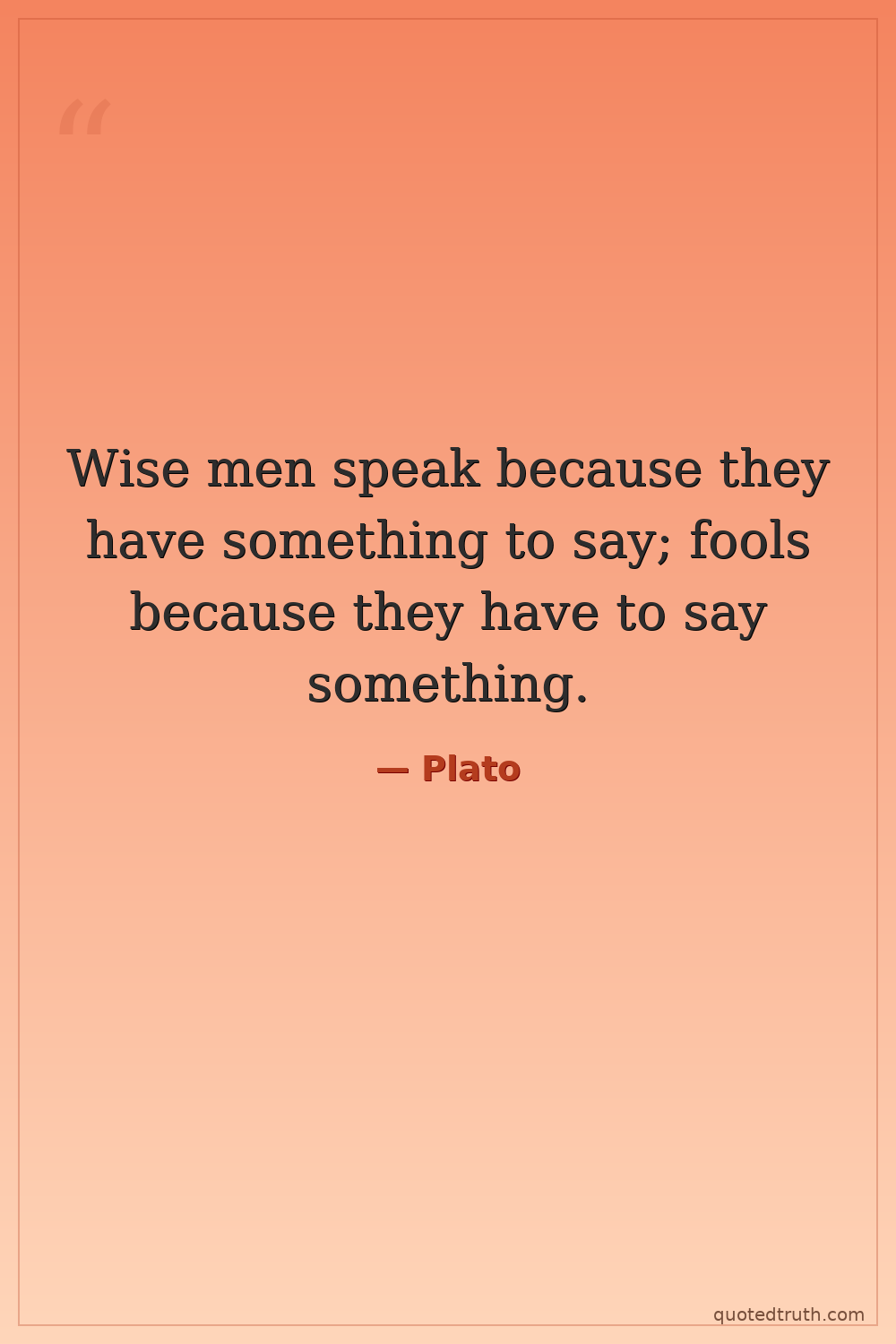 Wise men speak because they have something to say; fools because they have to say something.
