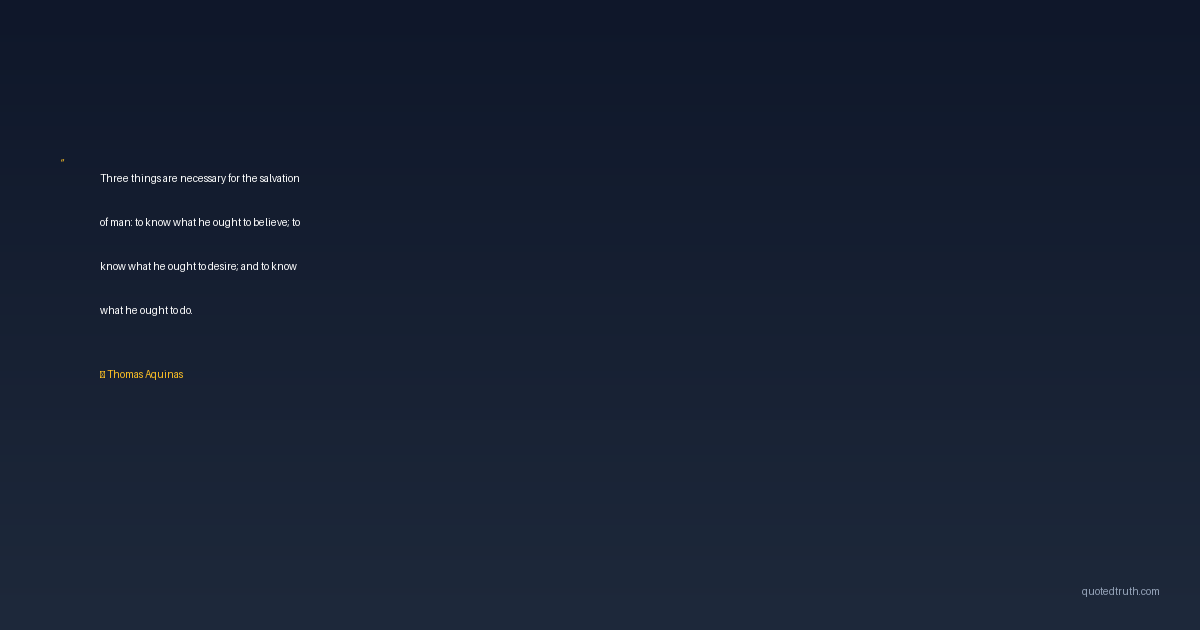 Three things are necessary for the salvation of man: to know what he ought to believe; to know what he ought to desire; and to know what he ought to do.