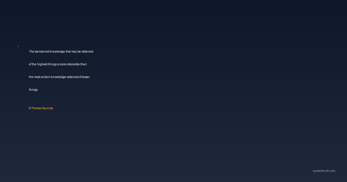 The slenderest knowledge that may be obtained of the highest things is more desirable than the most certain knowledge obtained of lesser things.