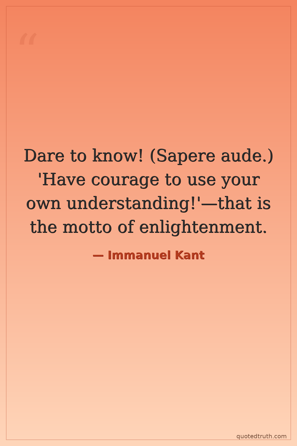 Dare to know! (Sapere aude.) 'Have courage to use your own understanding!'—that is the motto of enlightenment.