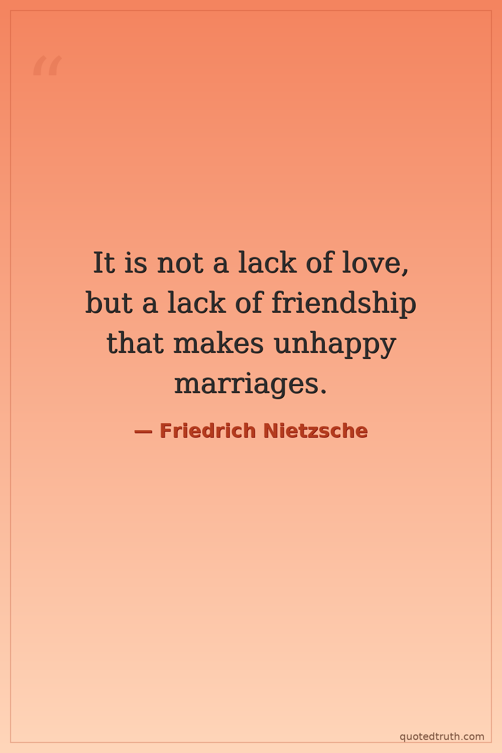 It is not a lack of love, but a lack of friendship that makes unhappy marriages.