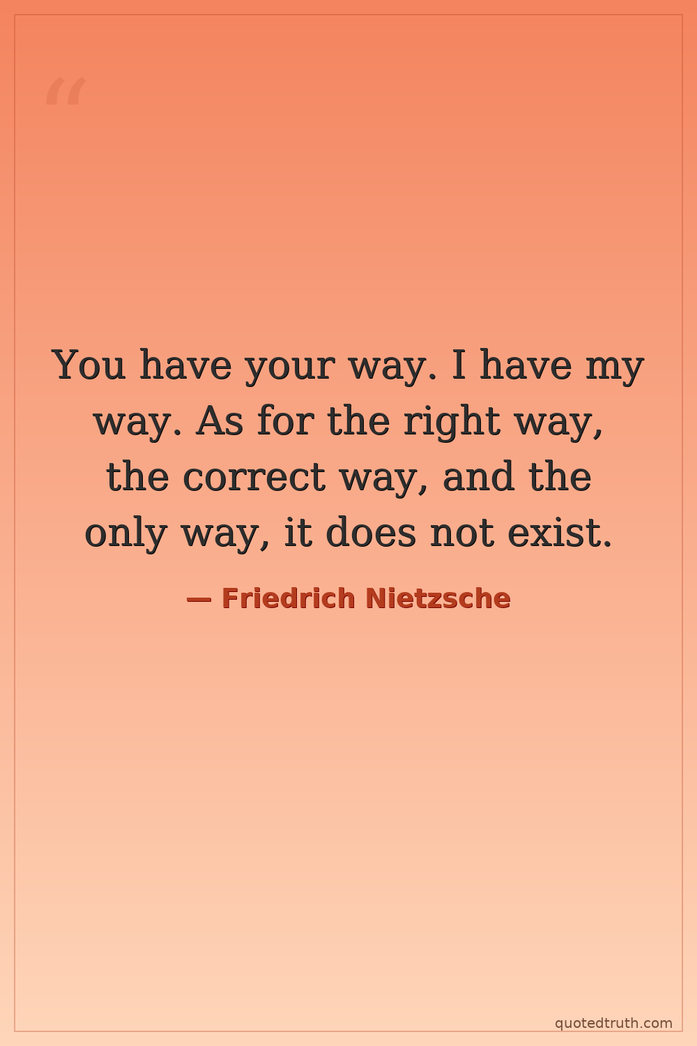 You have your way. I have my way. As for the right way, the correct way, and the only way, it does not exist.