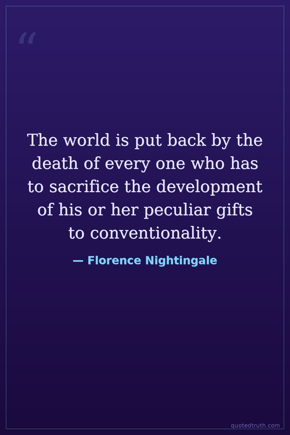 The world is put back by the death of every one who has to sacrifice the development of his or her peculiar gifts to conventionality.