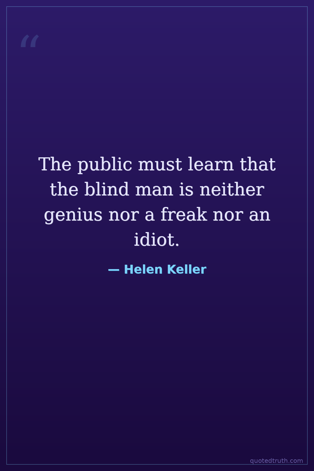 The public must learn that the blind man is neither genius nor a freak nor an idiot.