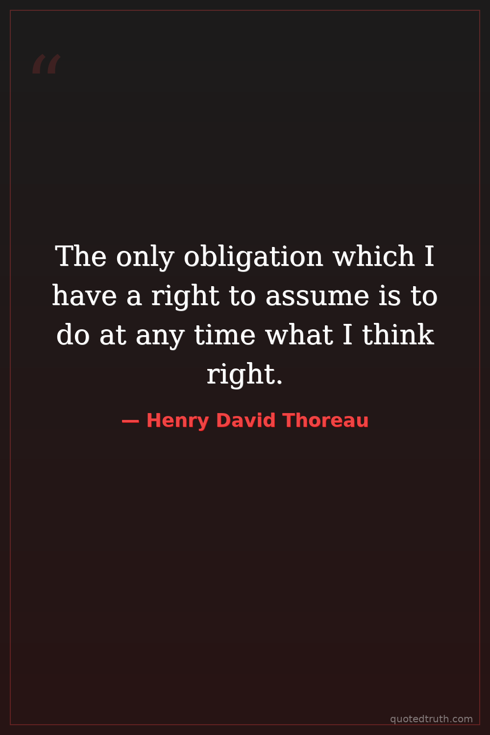 The only obligation which I have a right to assume is to do at any time what I think right.