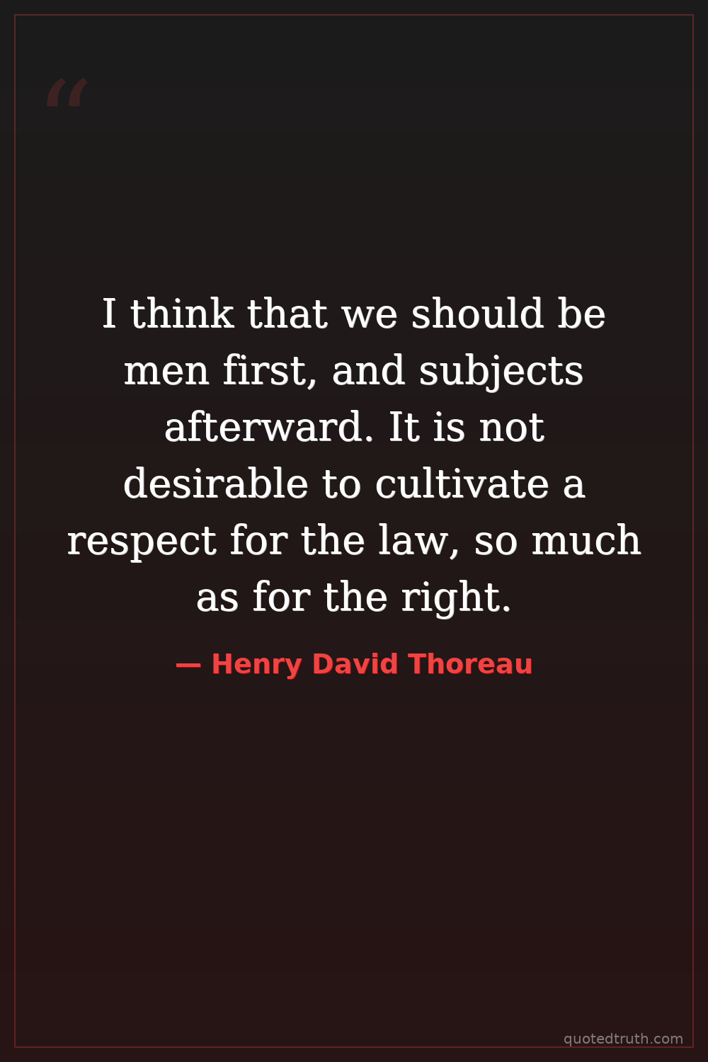 I think that we should be men first, and subjects afterward. It is not desirable to cultivate a respect for the law, so much as for the right.