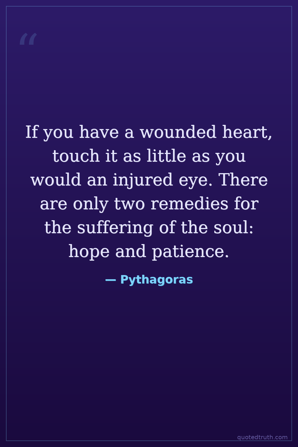 If you have a wounded heart, touch it as little as you would an injured eye. There are only two remedies for the suffering of the soul: hope and patience.