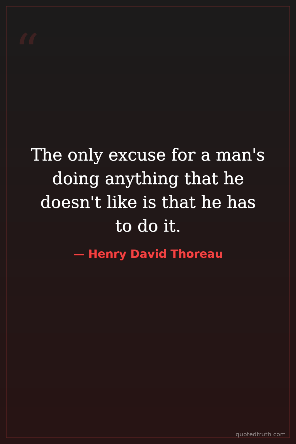 The only excuse for a man's doing anything that he doesn't like is that he has to do it.