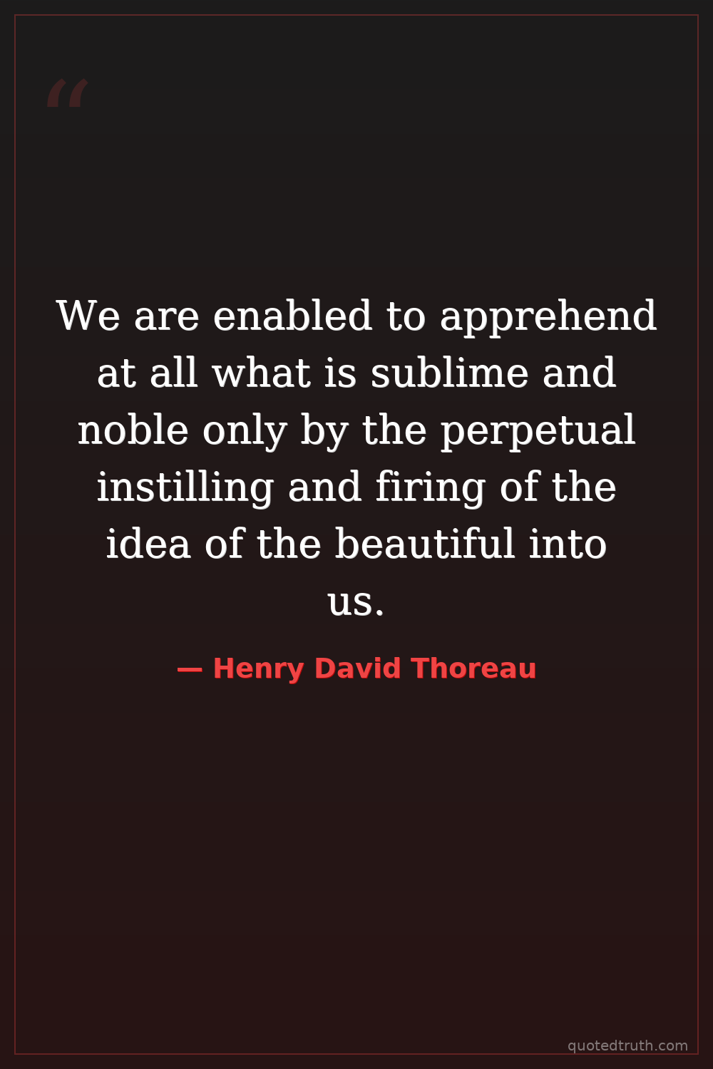 We are enabled to apprehend at all what is sublime and noble only by the perpetual instilling and firing of the idea of the beautiful into us.