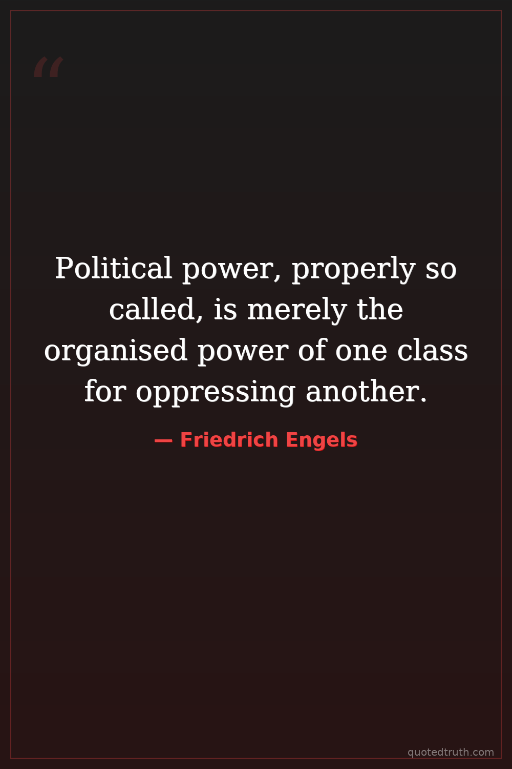 Political power, properly so called, is merely the organised power of one class for oppressing another.
