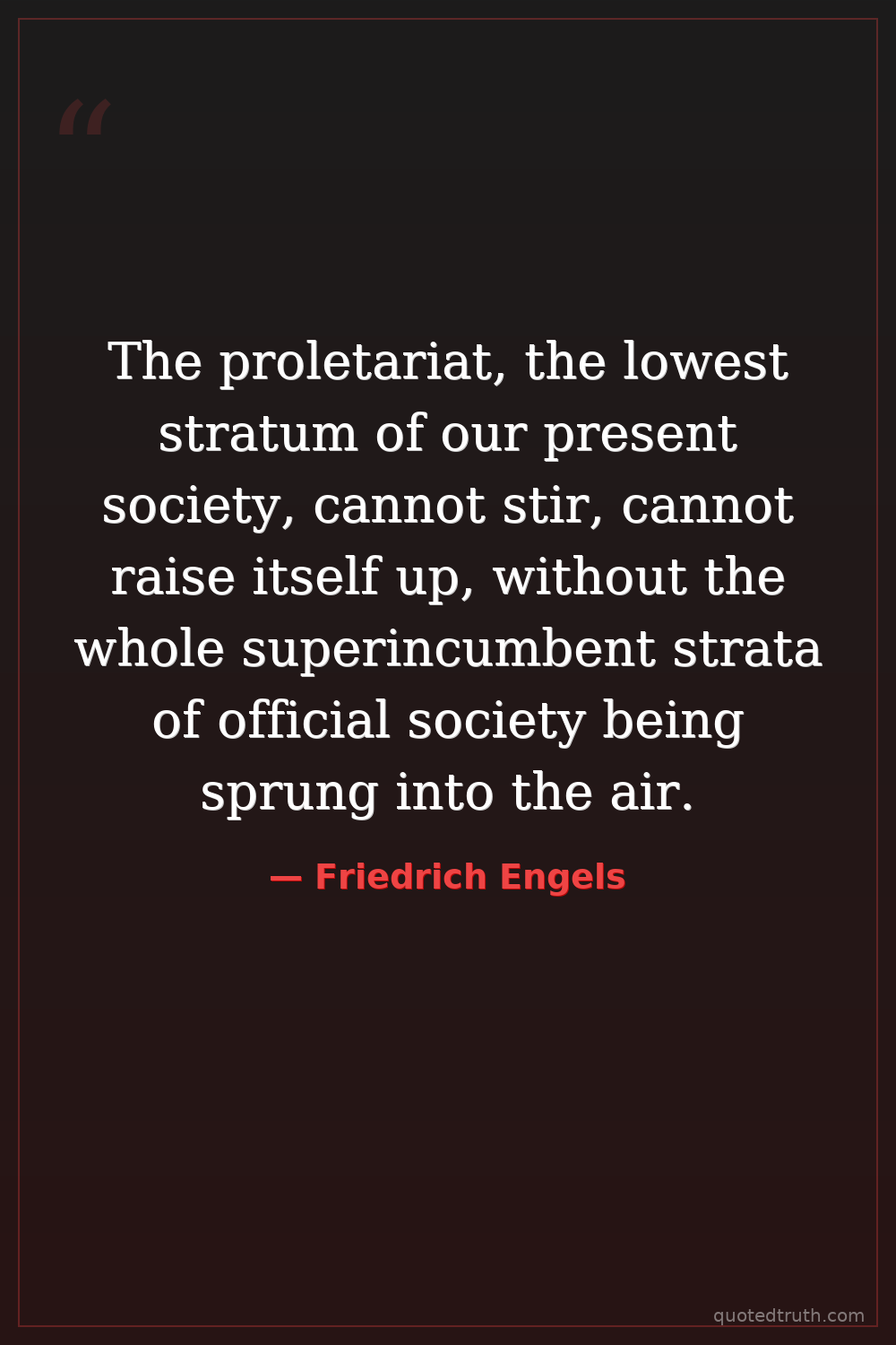The proletariat, the lowest stratum of our present society, cannot stir, cannot raise itself up, without the whole superincumbent strata of official society being sprung into the air.