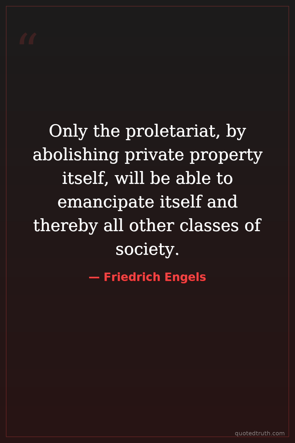 Only the proletariat, by abolishing private property itself, will be able to emancipate itself and thereby all other classes of society.