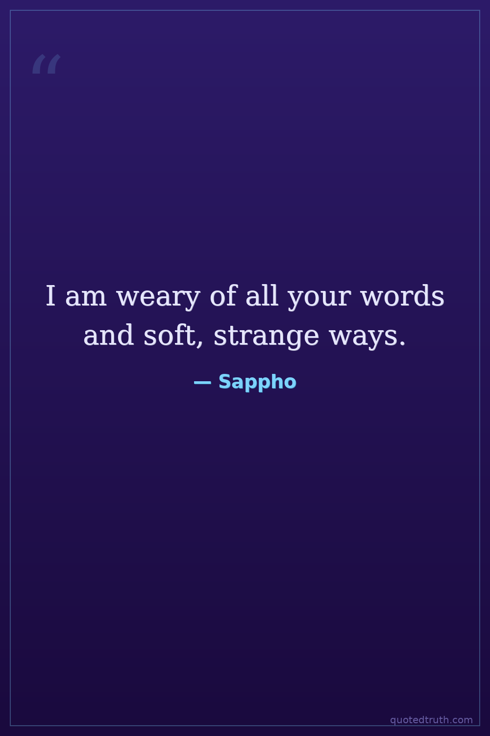 I am weary of all your words and soft, strange ways.