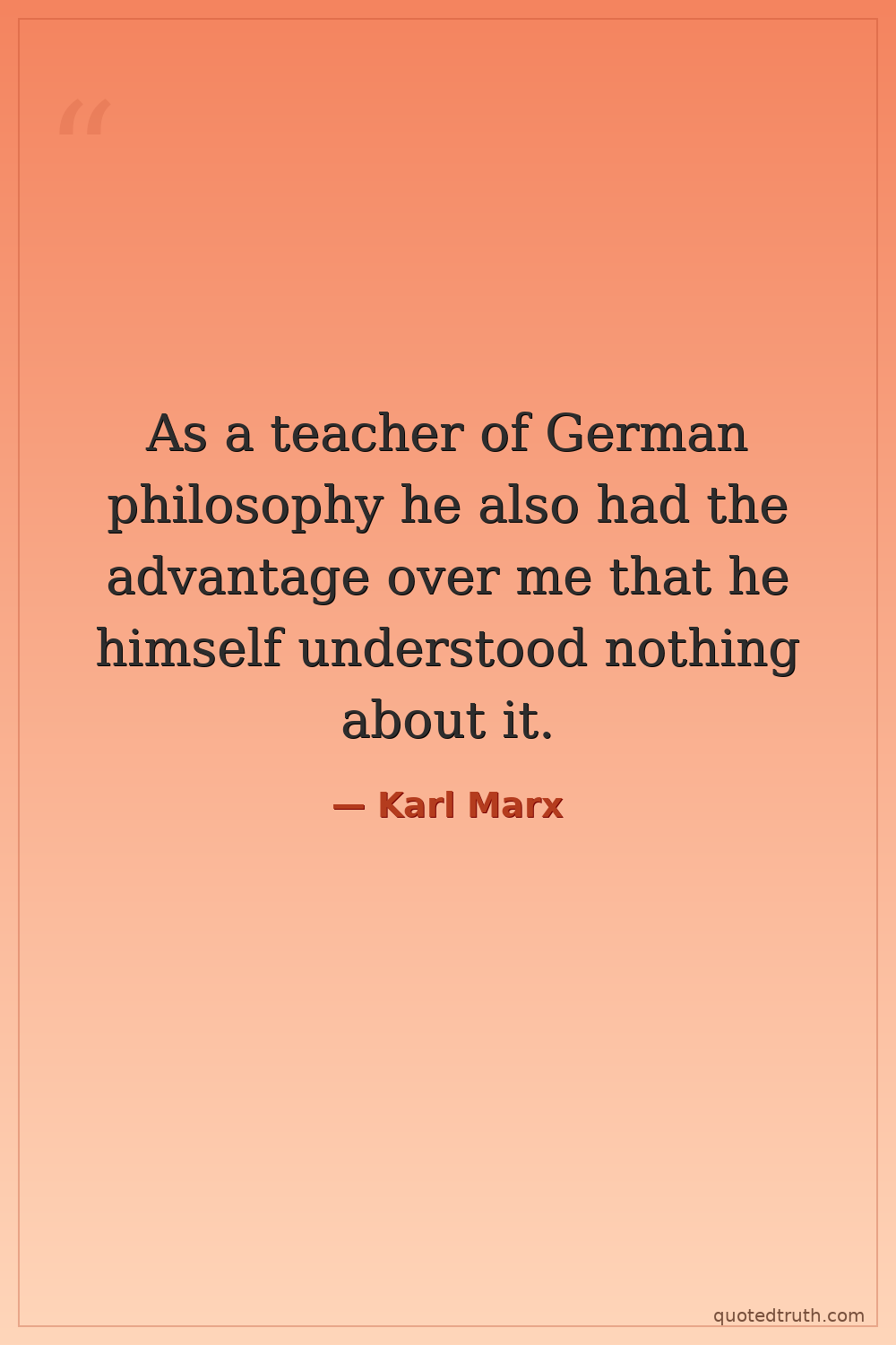 As a teacher of German philosophy he also had the advantage over me that he himself understood nothing about it.