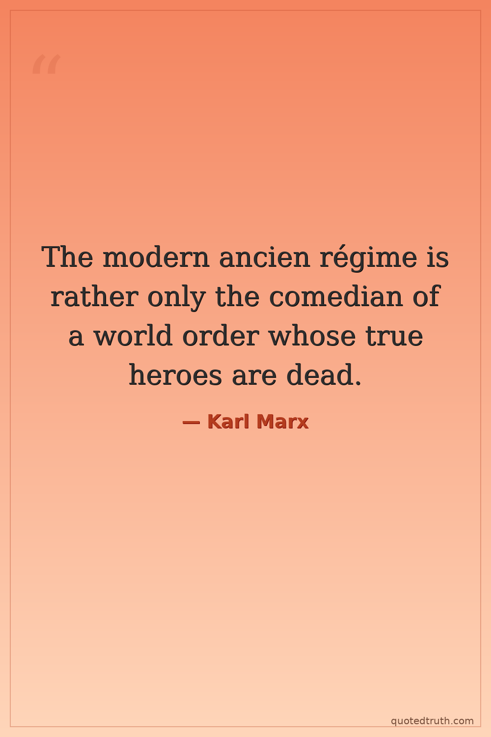 The modern ancien régime is rather only the comedian of a world order whose true heroes are dead.