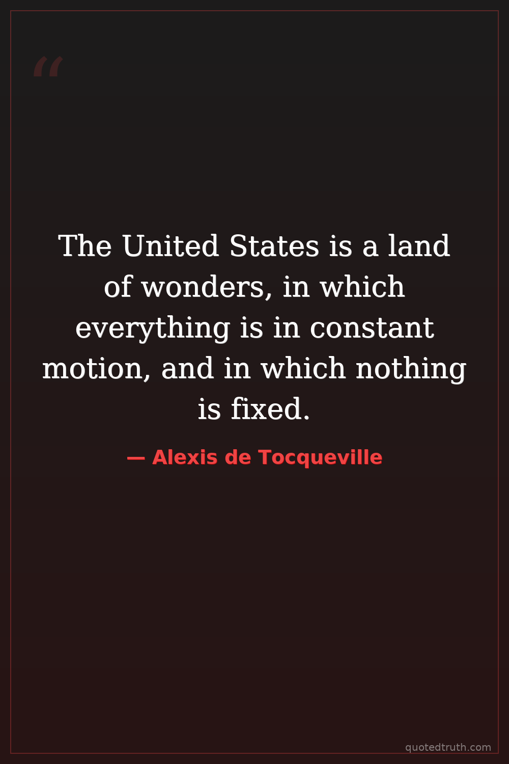 The United States is a land of wonders, in which everything is in constant motion, and in which nothing is fixed.