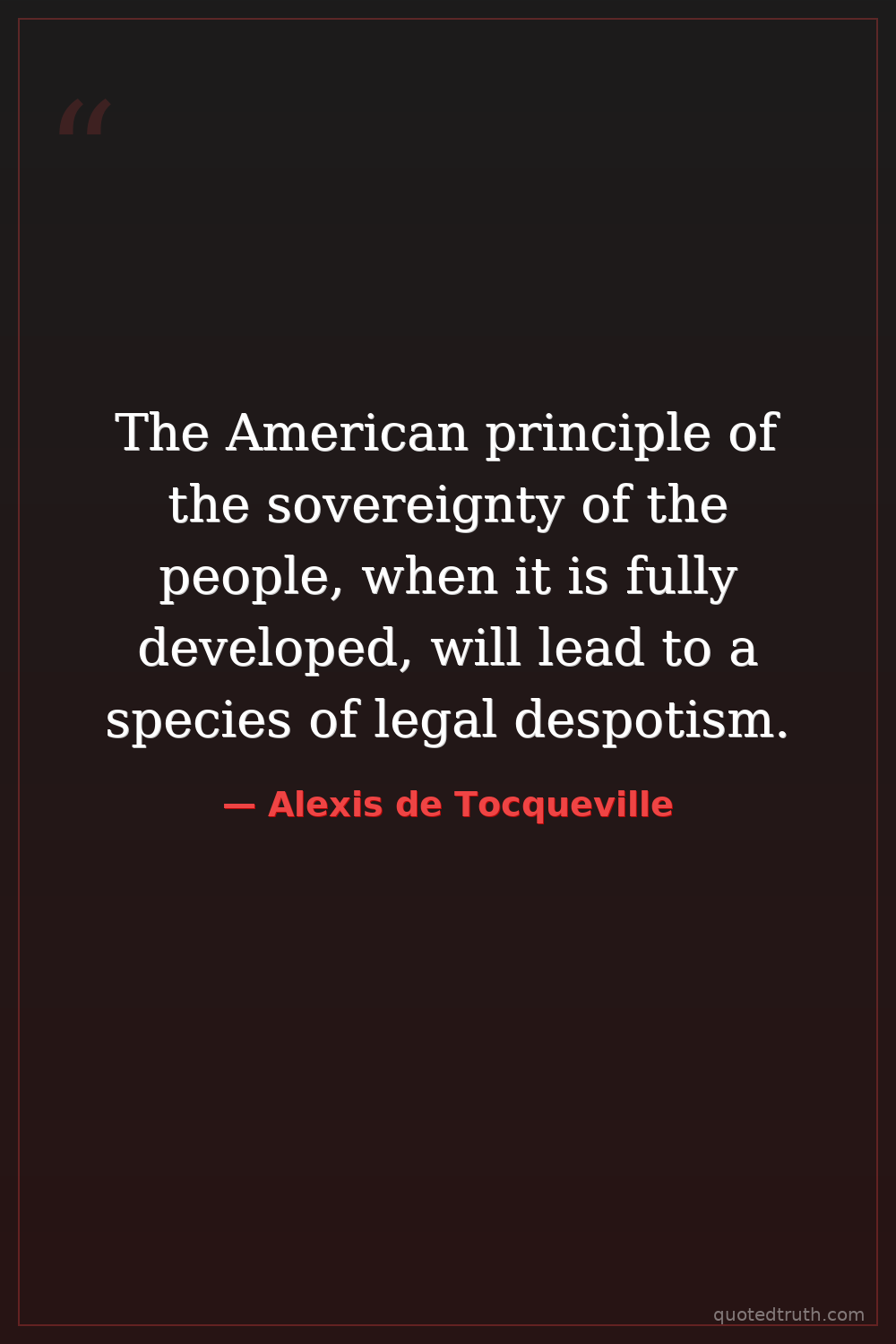 The American principle of the sovereignty of the people, when it is fully developed, will lead to a species of legal despotism.