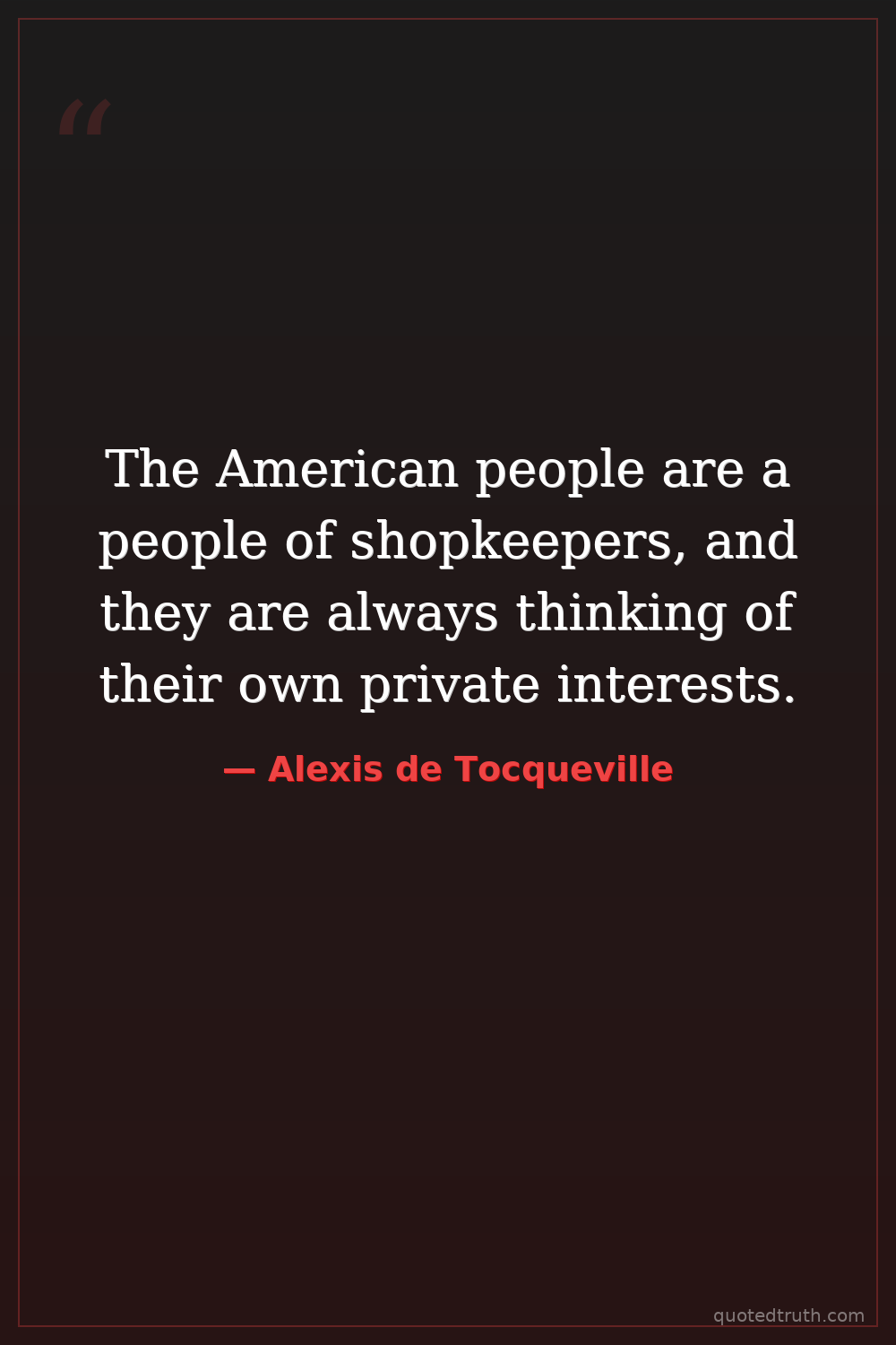 The American people are a people of shopkeepers, and they are always thinking of their own private interests.