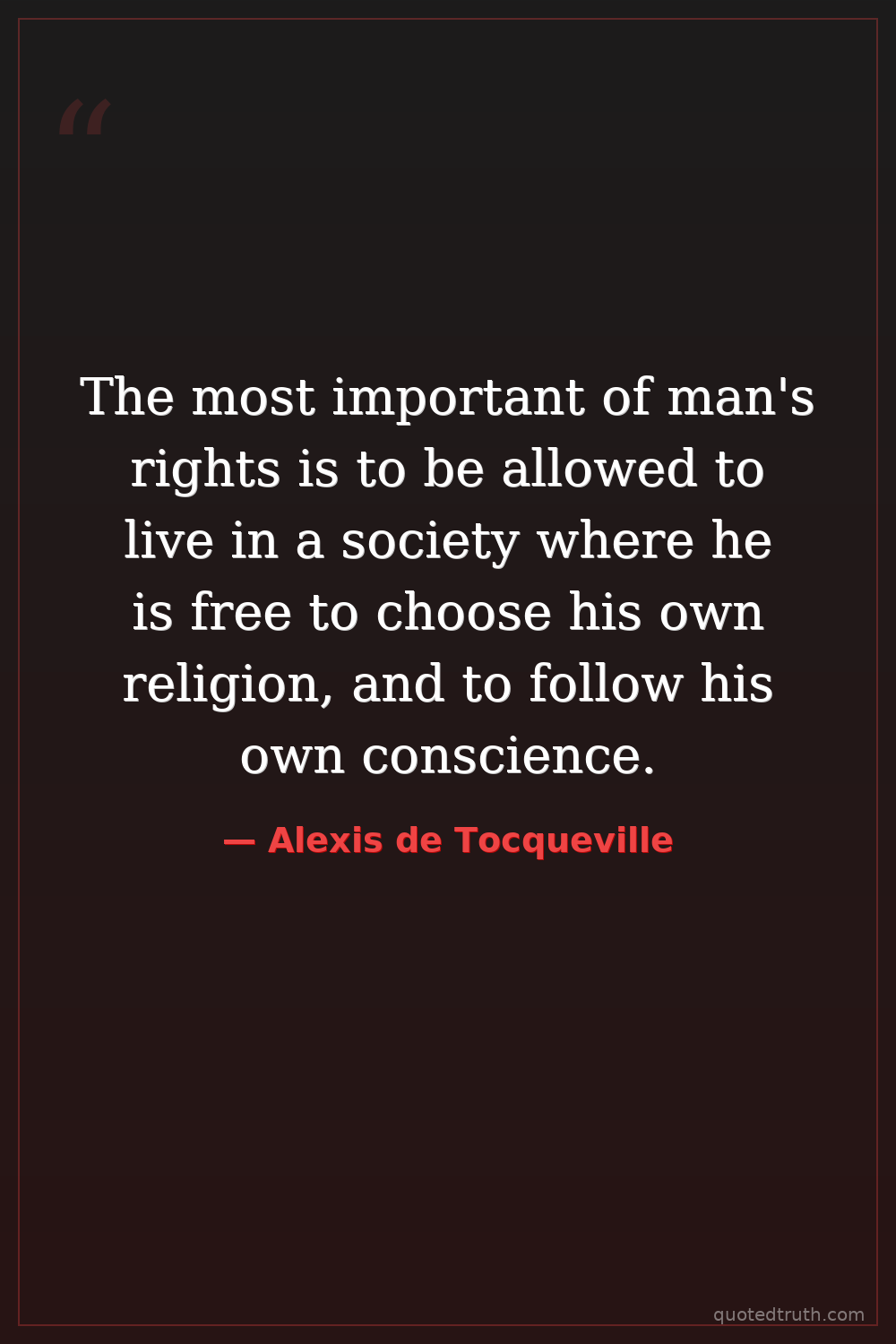 The most important of man's rights is to be allowed to live in a society where he is free to choose his own religion, and to follow his own conscience.