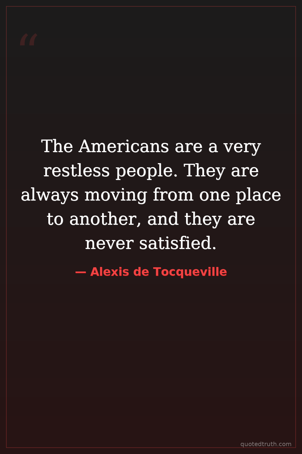 The Americans are a very restless people. They are always moving from one place to another, and they are never satisfied.