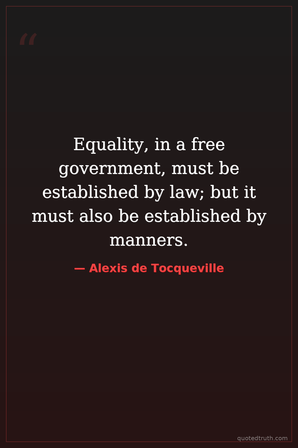 Equality, in a free government, must be established by law; but it must also be established by manners.