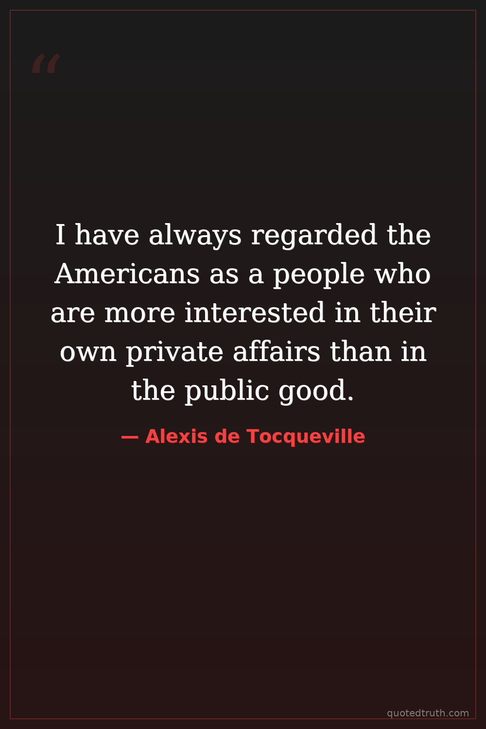 I have always regarded the Americans as a people who are more interested in their own private affairs than in the public good.
