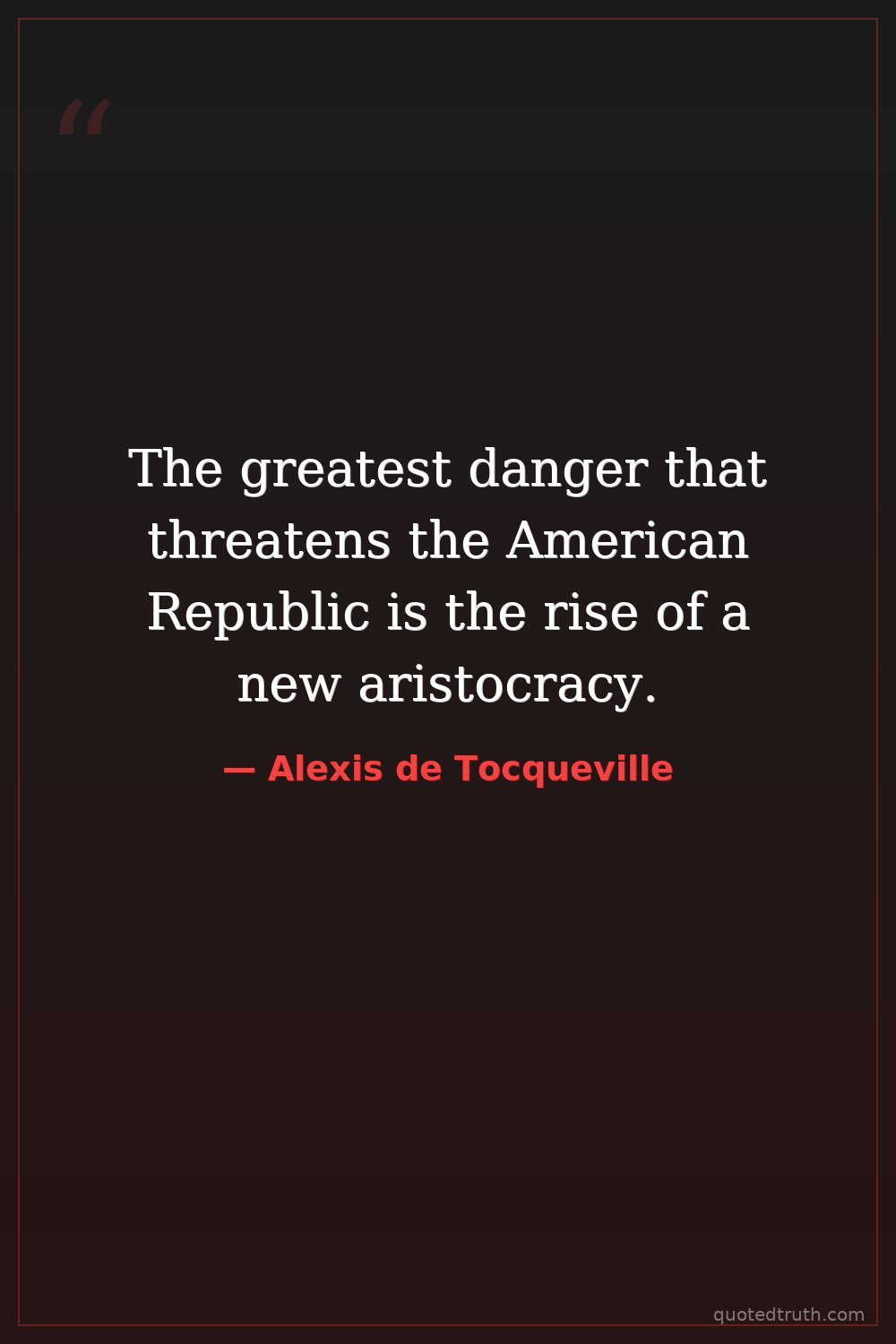 The greatest danger that threatens the American Republic is the rise of a new aristocracy.