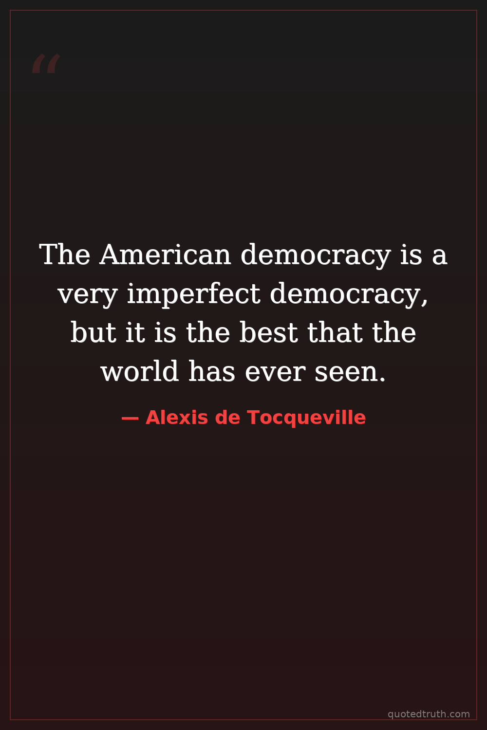 The American democracy is a very imperfect democracy, but it is the best that the world has ever seen.