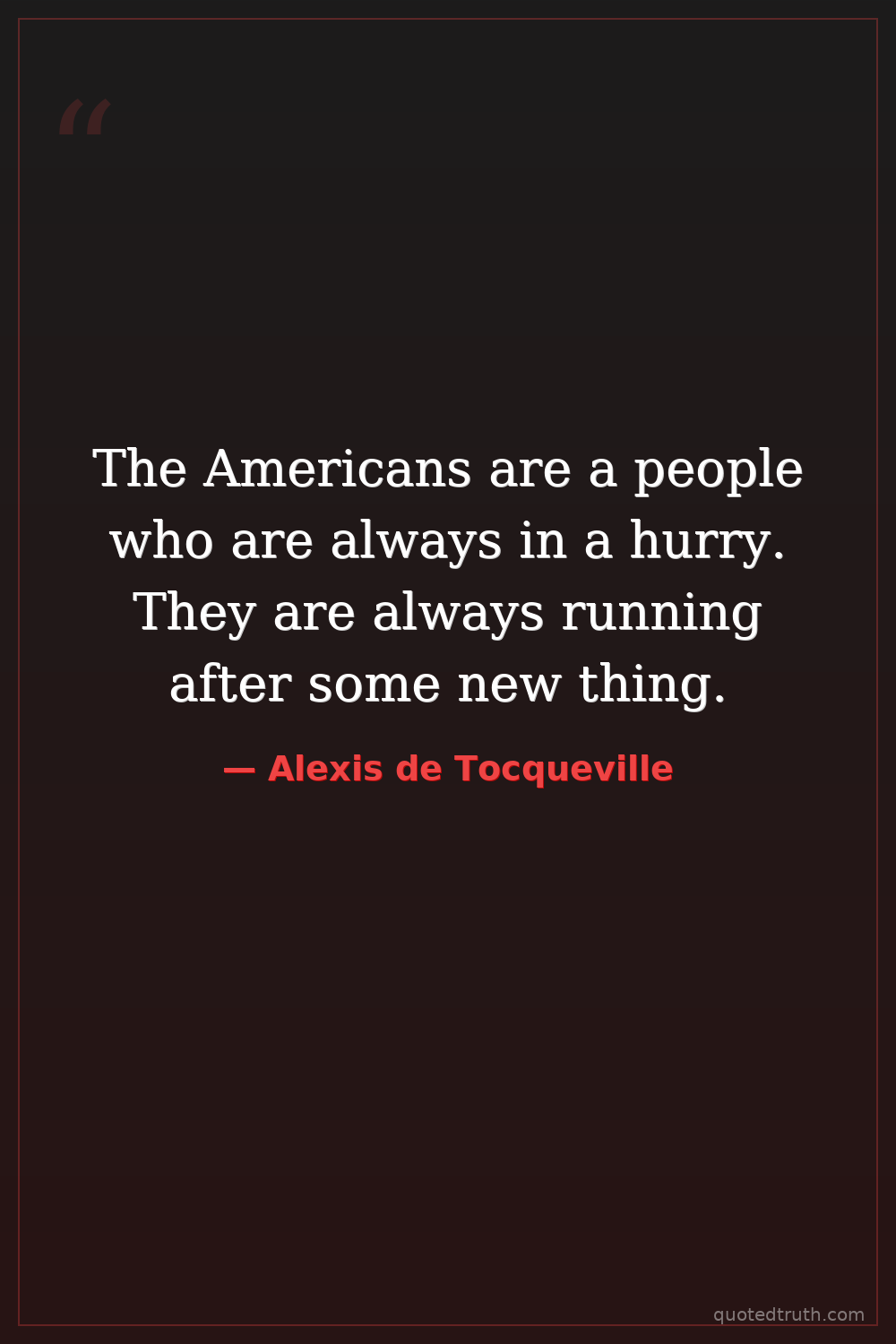 The Americans are a people who are always in a hurry. They are always running after some new thing.