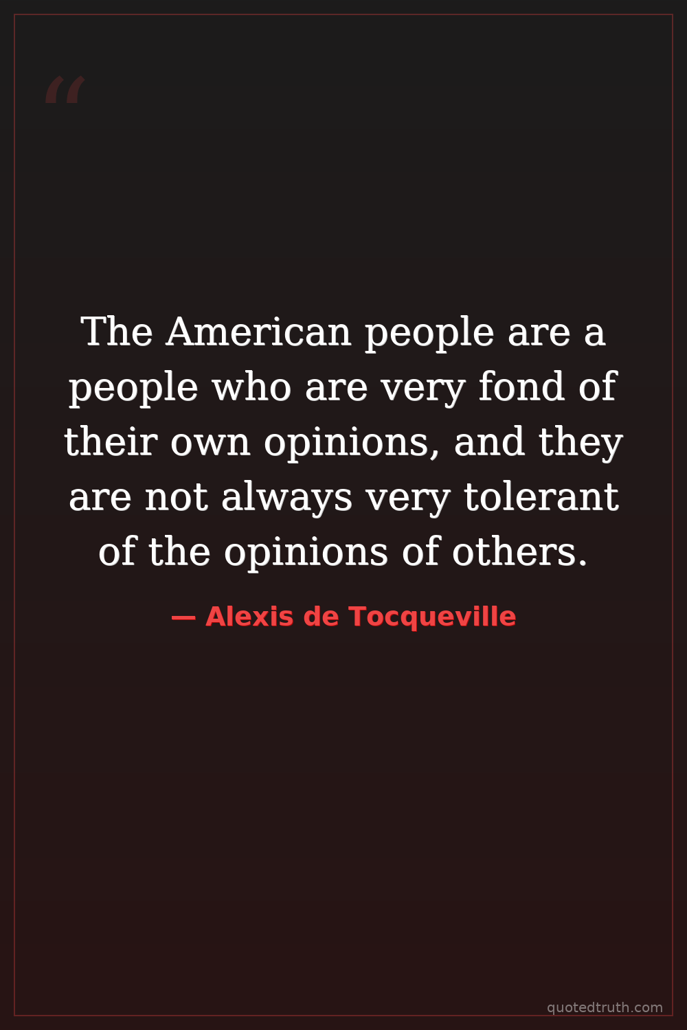 The American people are a people who are very fond of their own opinions, and they are not always very tolerant of the opinions of others.