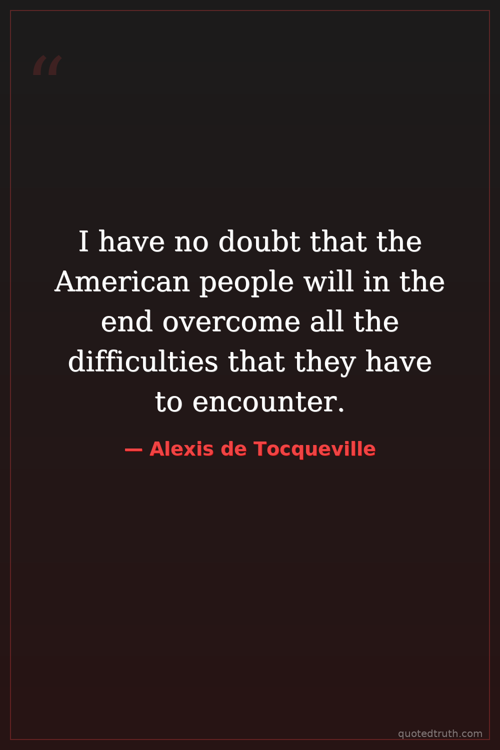 I have no doubt that the American people will in the end overcome all the difficulties that they have to encounter.