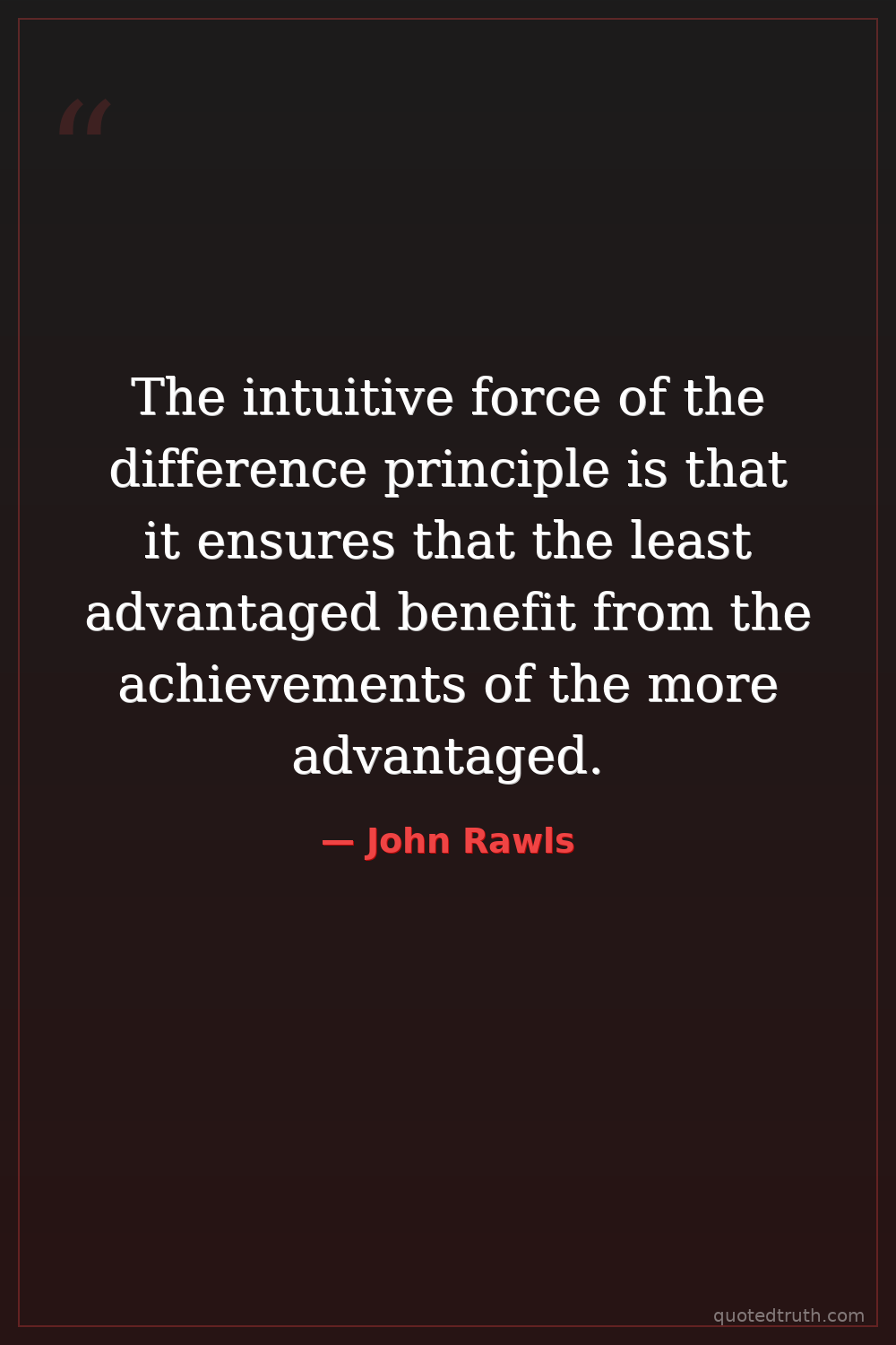 The intuitive force of the difference principle is that it ensures that the least advantaged benefit from the achievements of the more advantaged.