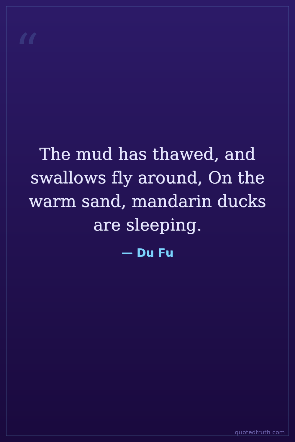 The mud has thawed, and swallows fly around, On the warm sand, mandarin ducks are sleeping.