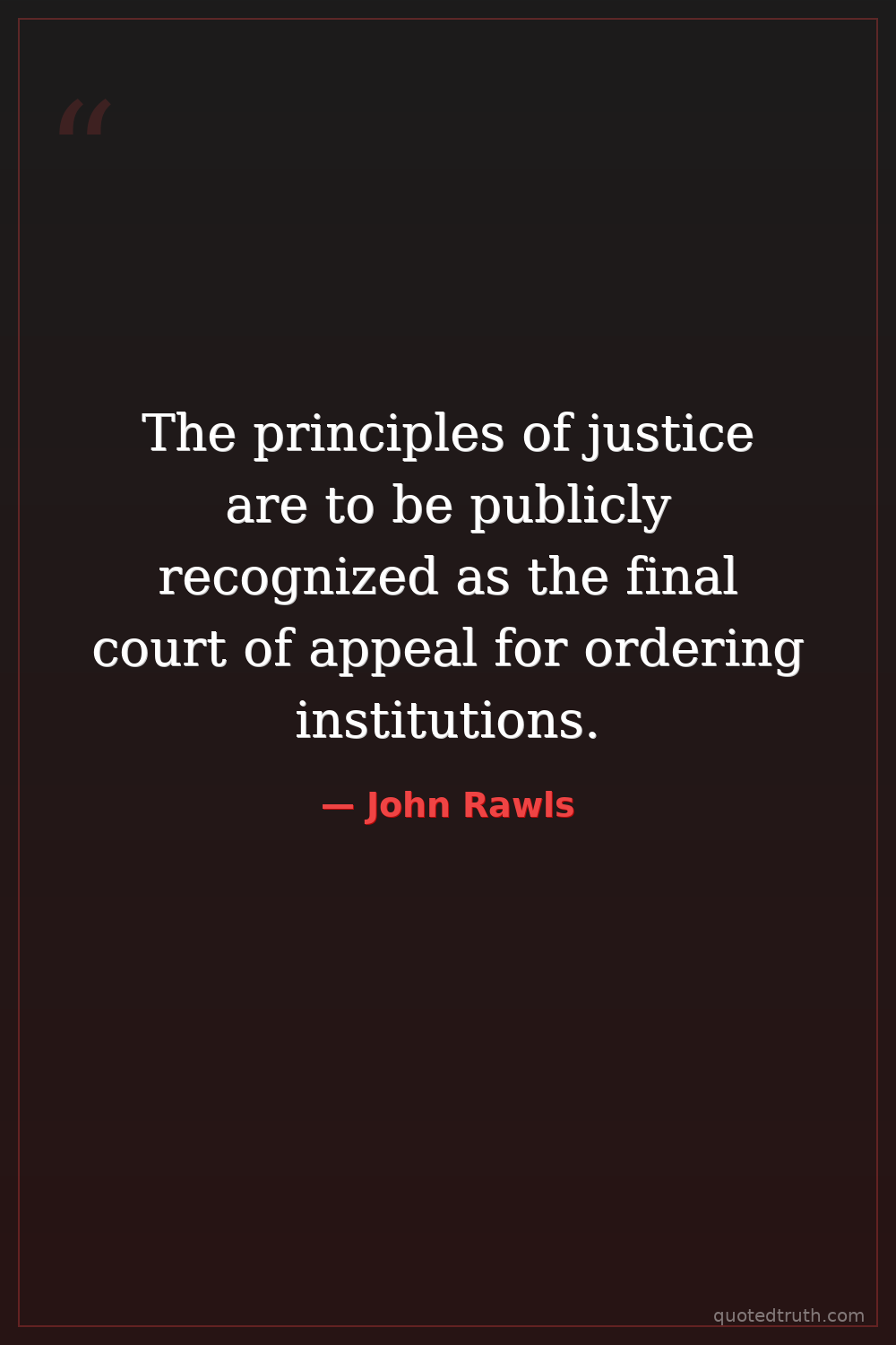The principles of justice are to be publicly recognized as the final court of appeal for ordering institutions.