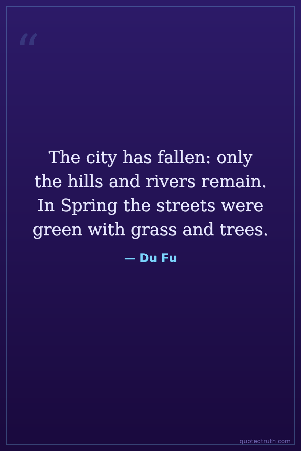 The city has fallen: only the hills and rivers remain. In Spring the streets were green with grass and trees.
