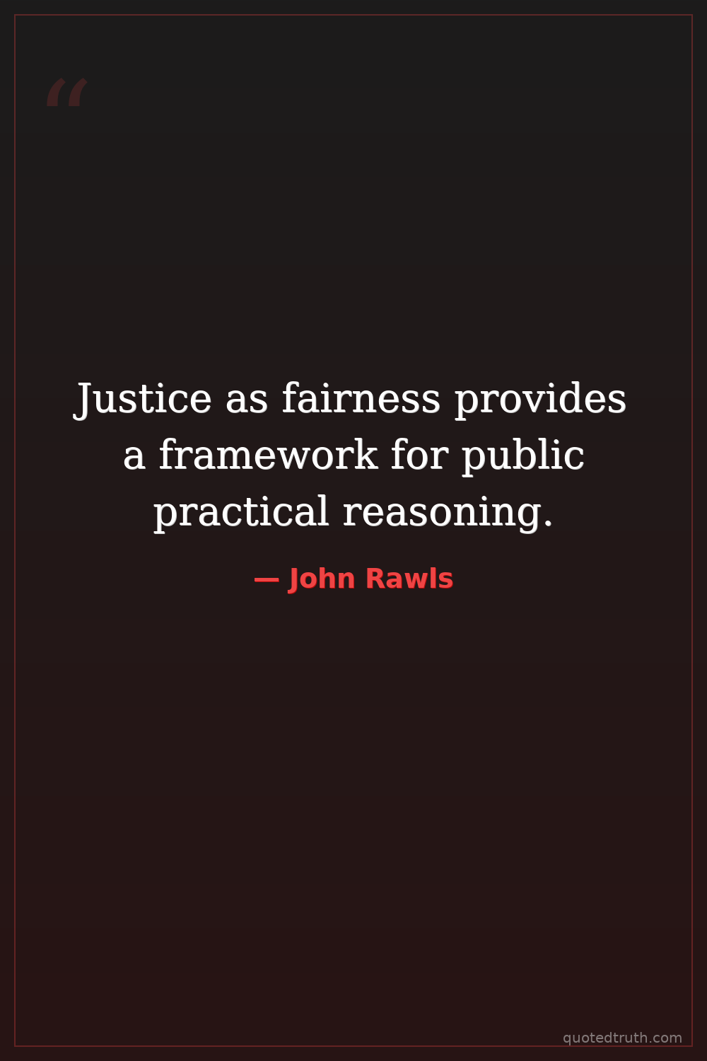 Justice as fairness provides a framework for public practical reasoning.