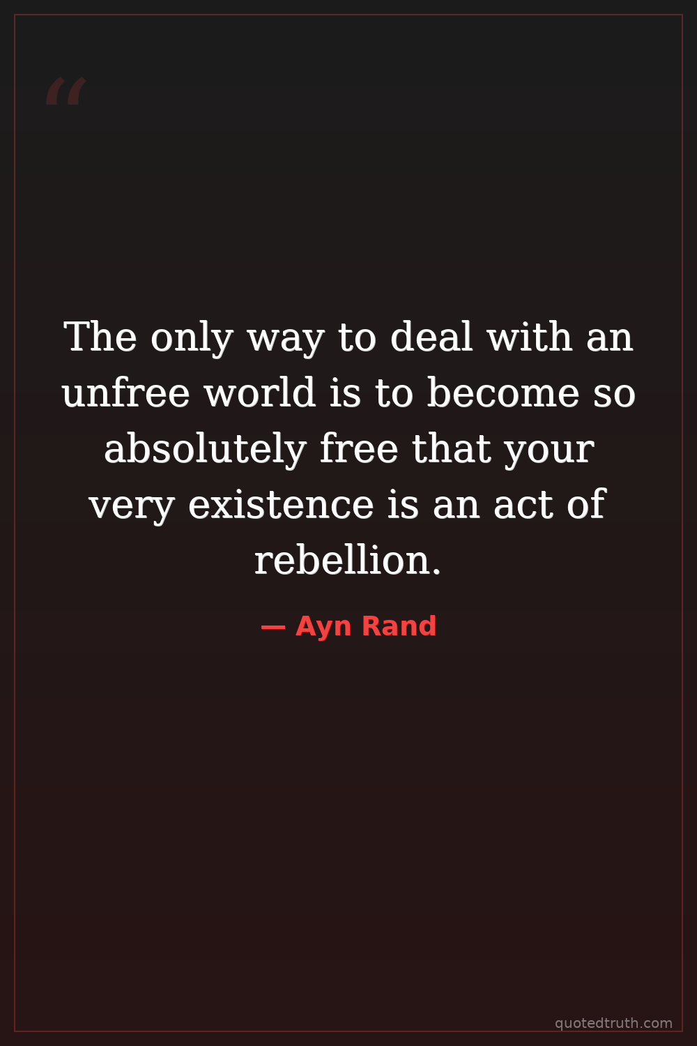 The only way to deal with an unfree world is to become so absolutely free that your very existence is an act of rebellion.