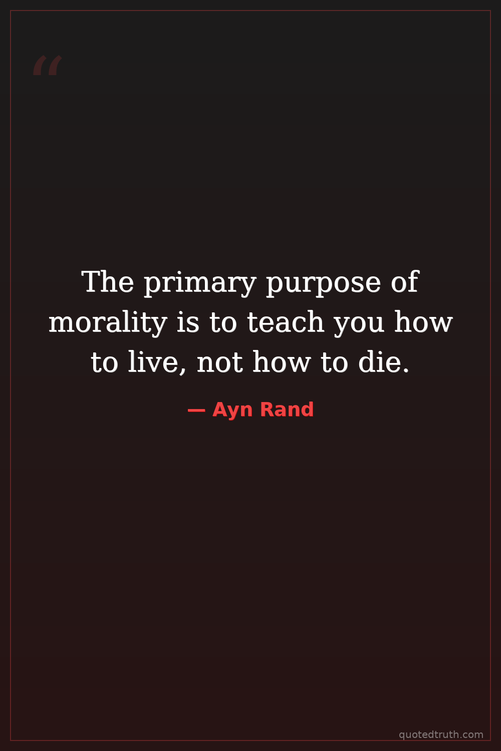 The primary purpose of morality is to teach you how to live, not how to die.