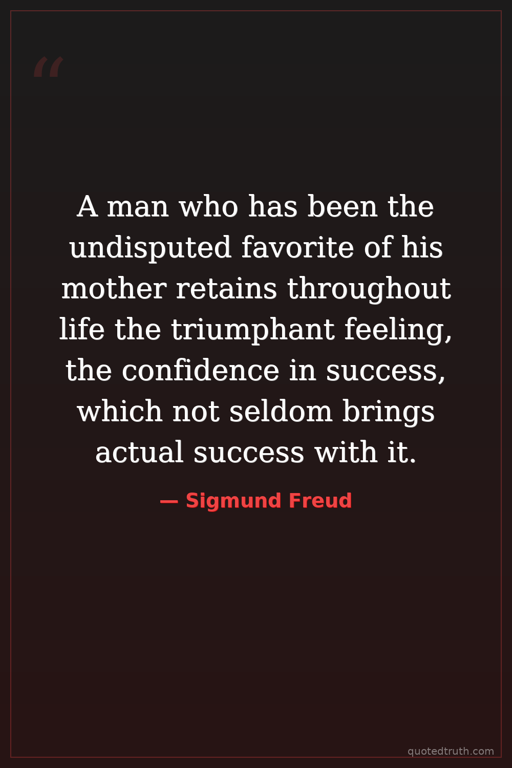 A man who has been the undisputed favorite of his mother retains throughout life the triumphant feeling, the confidence in success, which not seldom brings actual success with it.