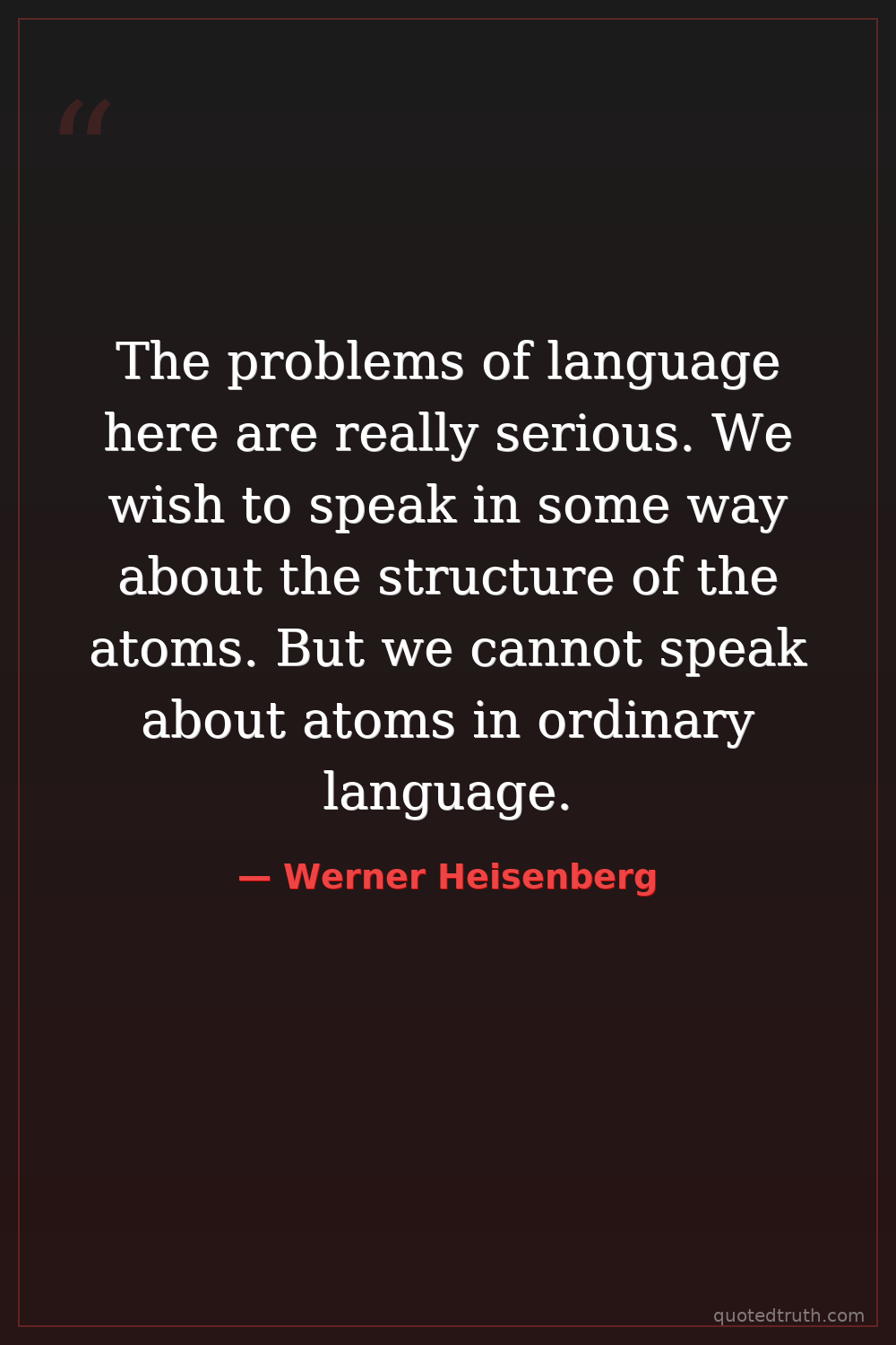The problems of language here are really serious. We wish to speak in some way about the structure of the atoms. But we cannot speak about atoms in ordinary language.
