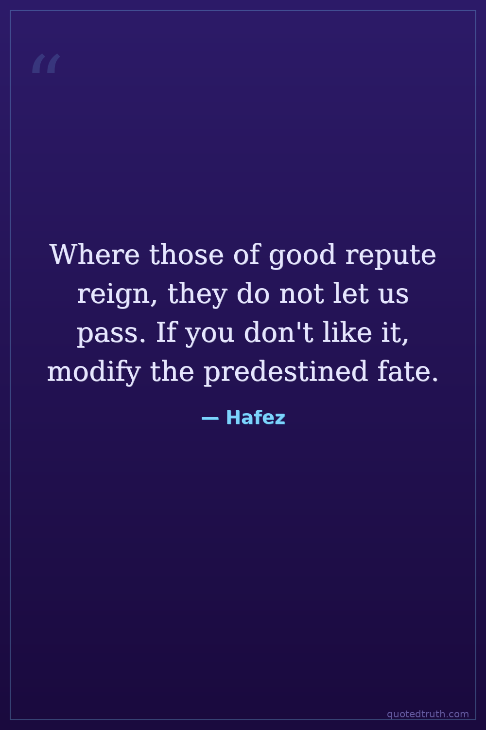 Where those of good repute reign, they do not let us pass. If you don't like it, modify the predestined fate.
