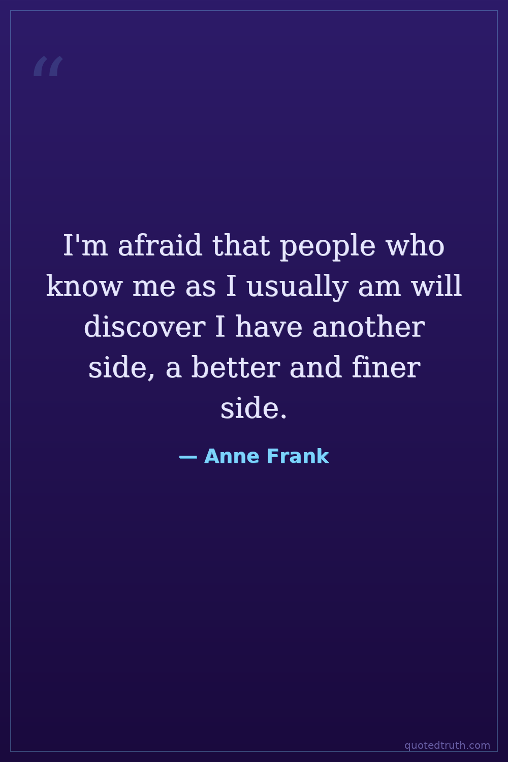 I'm afraid that people who know me as I usually am will discover I have another side, a better and finer side.