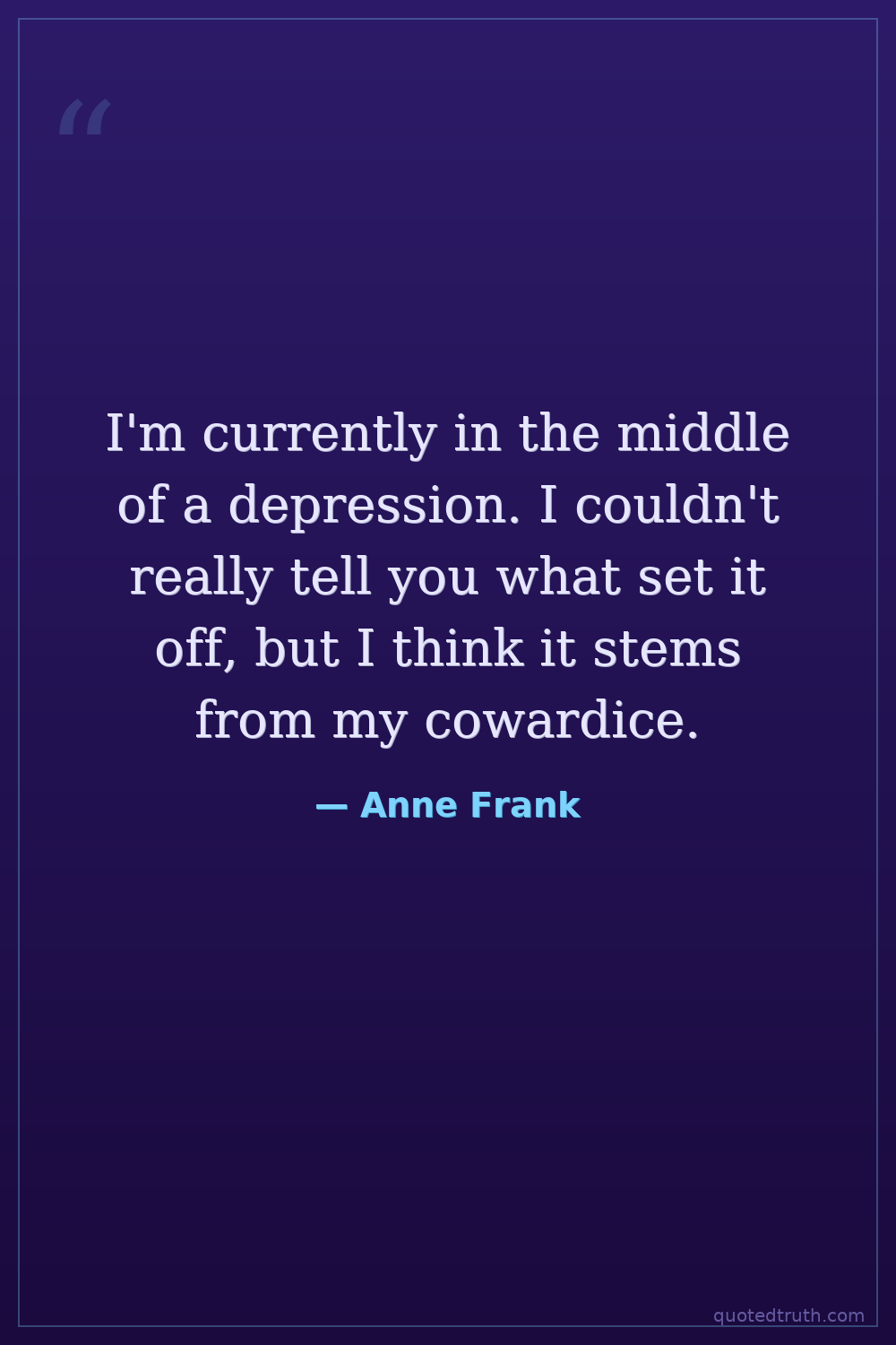I'm currently in the middle of a depression. I couldn't really tell you what set it off, but I think it stems from my cowardice.
