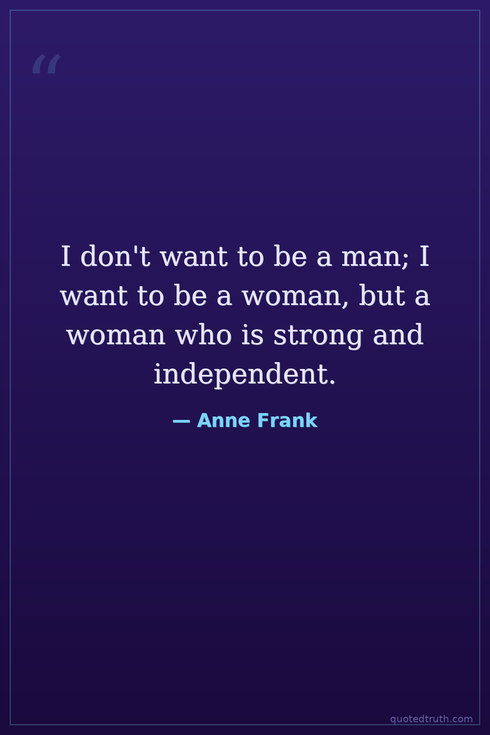I don't want to be a man; I want to be a woman, but a woman who is strong and independent.